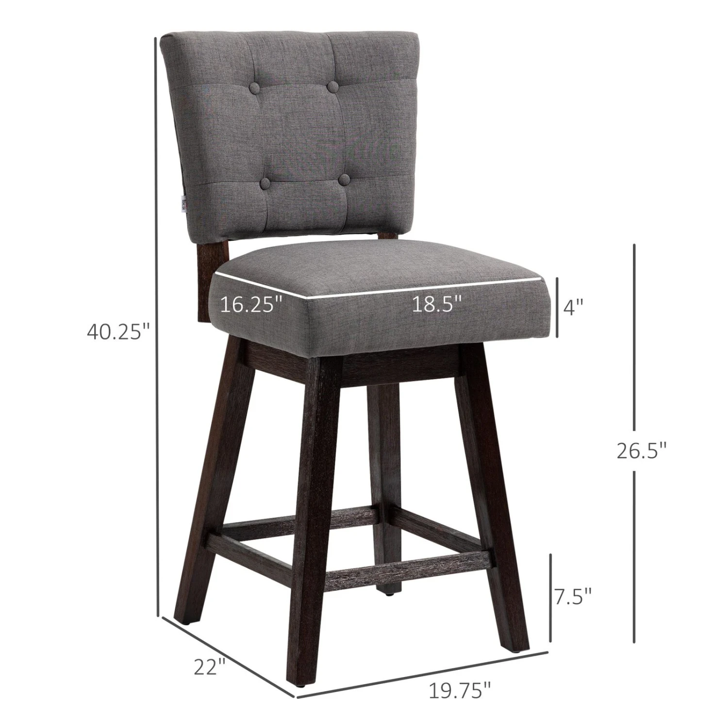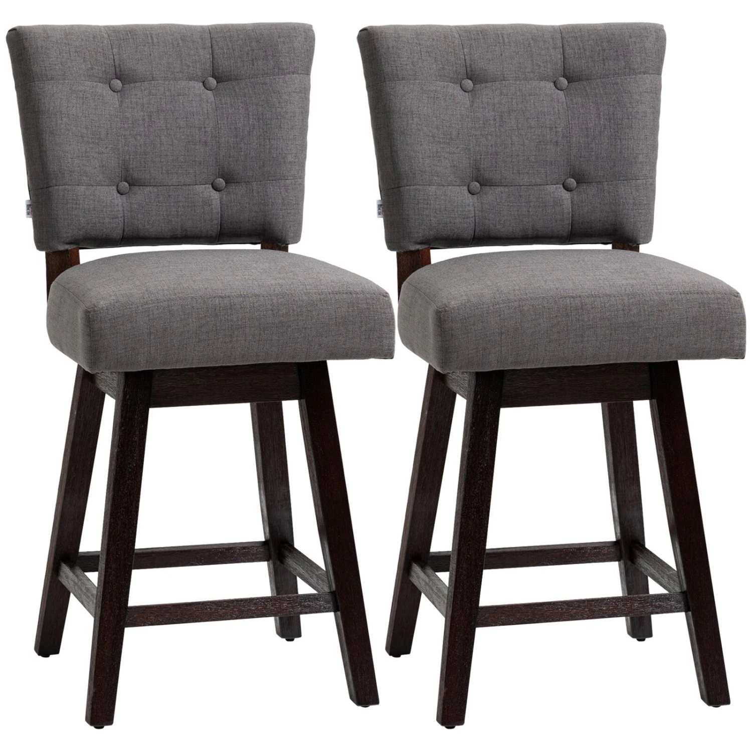 Stools Set, Bar Stools with Backs, Rubber Wood Legs, Button Tufted Design, Linen-Feel Fabric for Kitchen, Bar, Counter Height Stools, Dark Grey