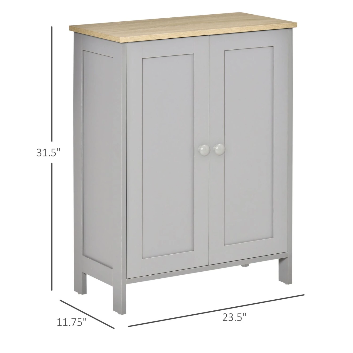 Storage Cabinet, Double Door Cupboard with 2 Adjustable Shelves, for Living Room, Bedroom, or Hallway, Grey