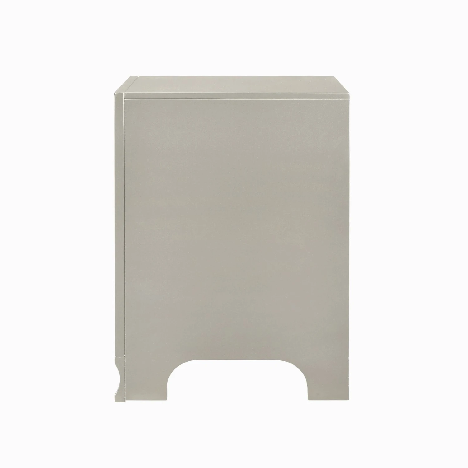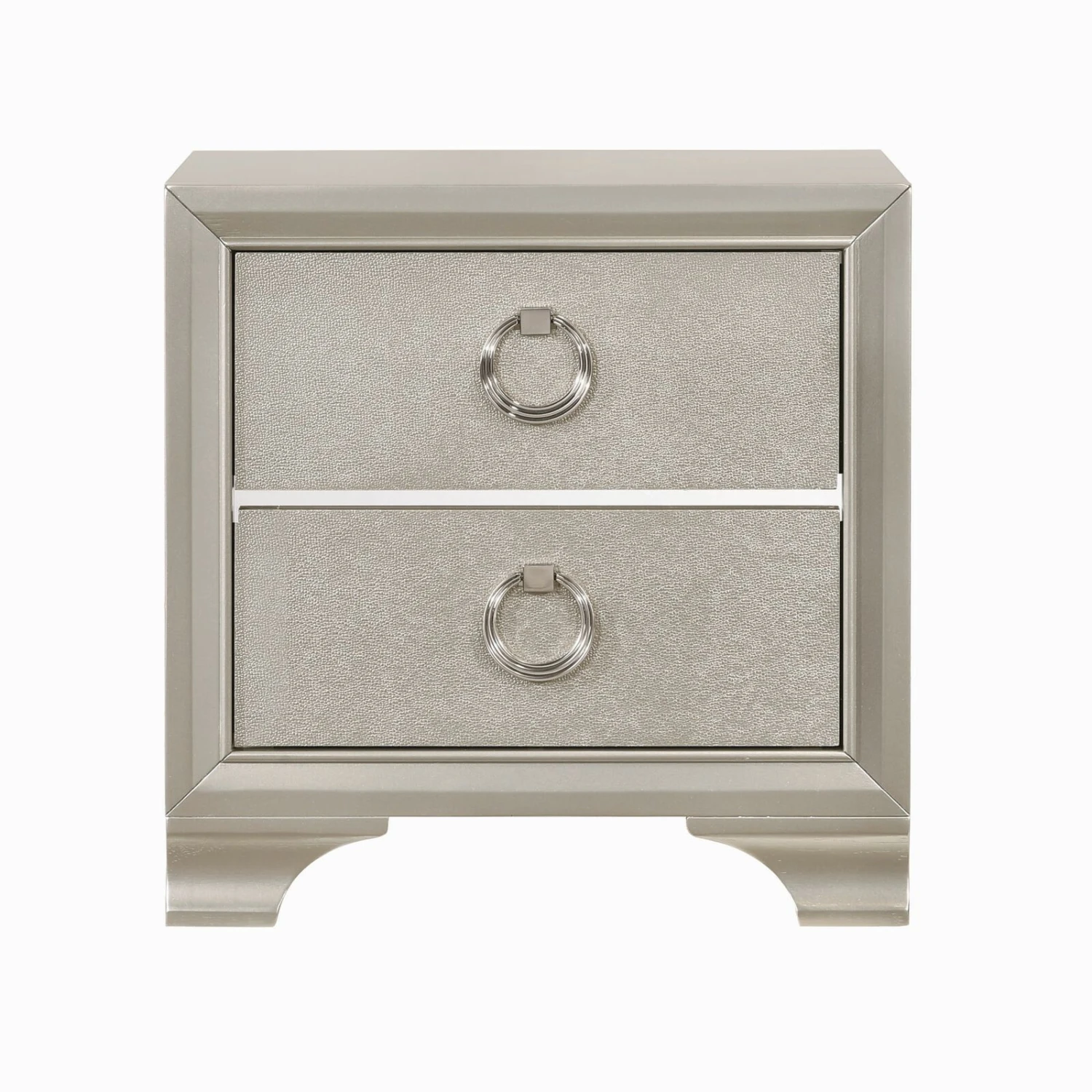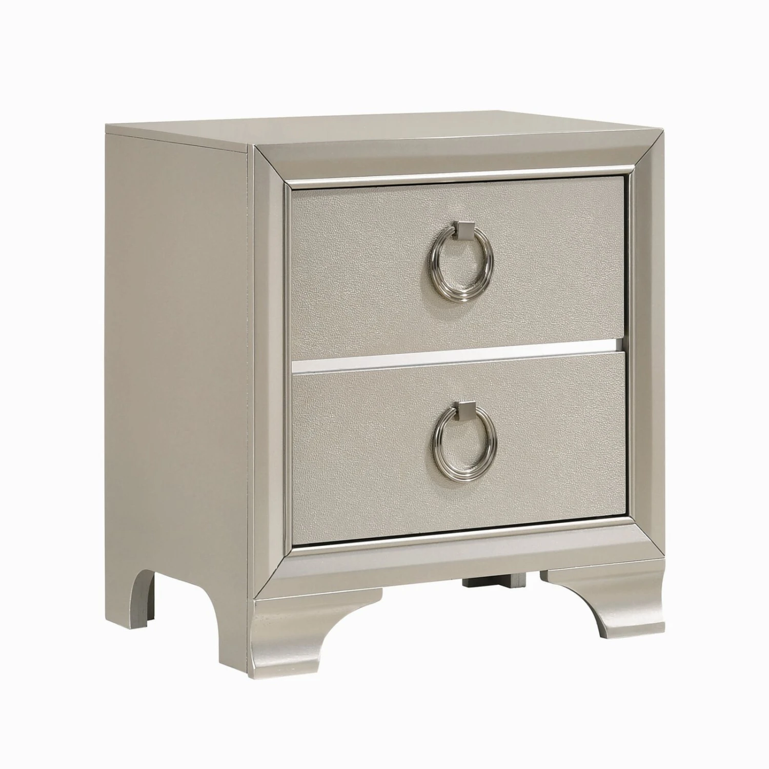 Two Drawers Wooden Nightstand with Oversized Ring Handles, Silver