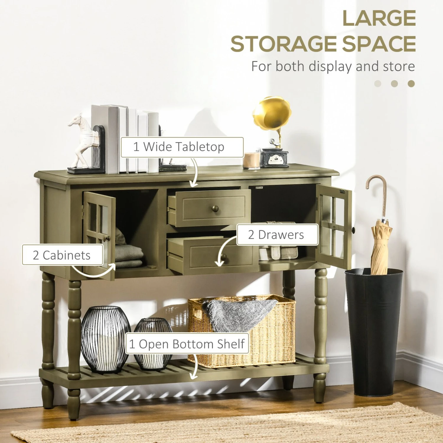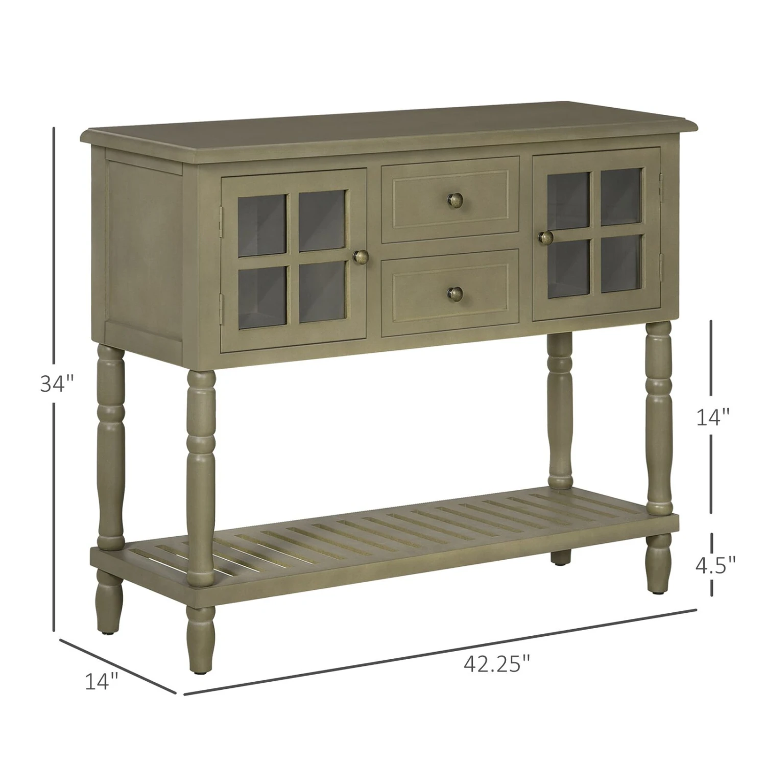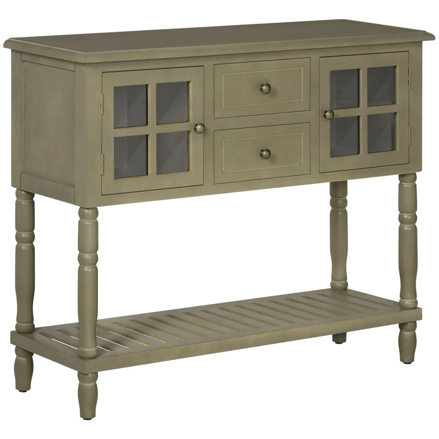 Vintage Console Table with 2 Drawers and Cabinets, Retro Sofa Table for Entryway, Living Room and Hallway, Light Grey