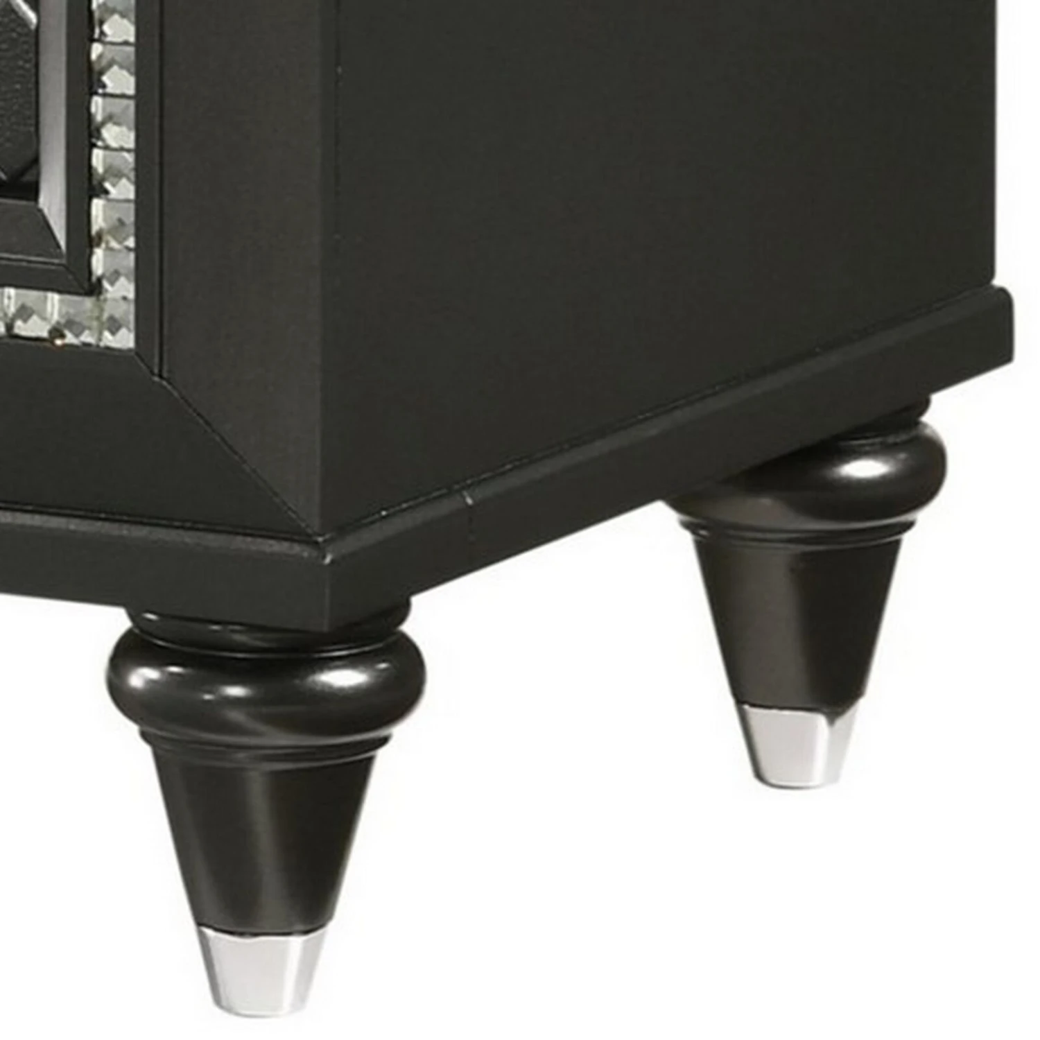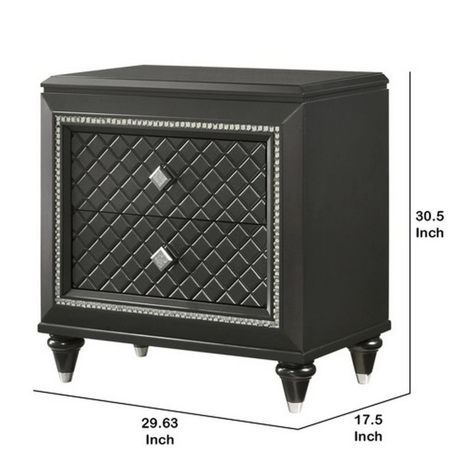 Wooden Two Drawer Nightstand with Carved Details and Knobs, Black-Benzara